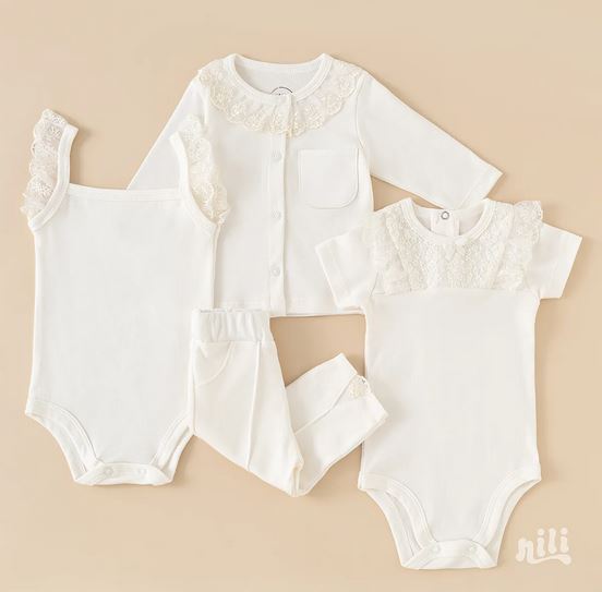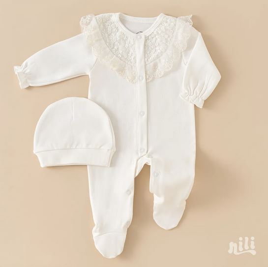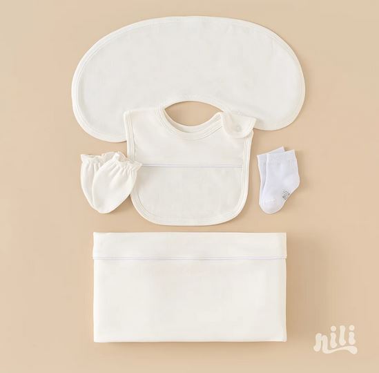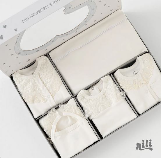 این ست شامل : زیر دکمه آستین کوتاه _ زیر دکمه رزکابی _ سرهمی جورابدار _ مانتو _ شلوار _ پیشبند _ کلاه گرد _ جوراب _ دستکش _ آروغ گیر _ دورپیچ نخی کلاه دار.